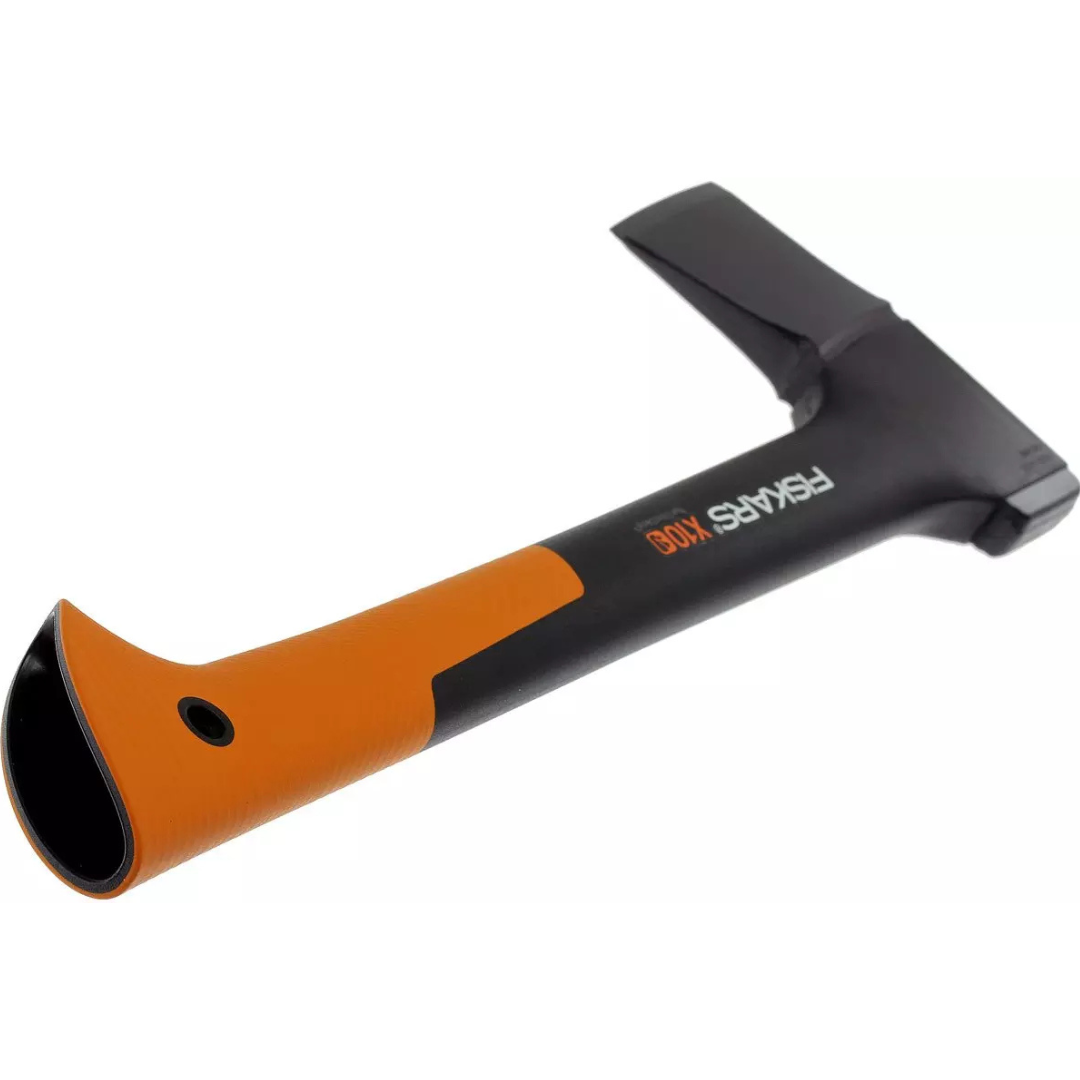 Traditionally, an axe has a wooden handle. Fiskars has decided that even an old type of tool such as an axe can be improved. The fibreglass reinforced plastic FiberComp handle of a Fiskars-axe is stronger than a wooden handle. Testing indicates that where a wooden handle breaks, the FiberComp handle can keep going without a problem. The axe head is integrated into the handle and will not come off of the stem. The handle absorbs vibrations and increases grip and comfort during chopping.